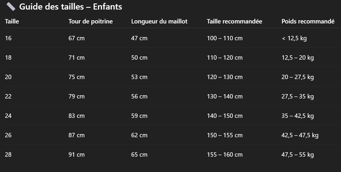 Guide des tailles